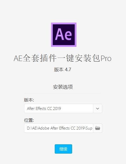 若电脑上有多个Ae软件版本,请选择需要安装插件的版本,若只有一个Ae软件版本,无需选择;&